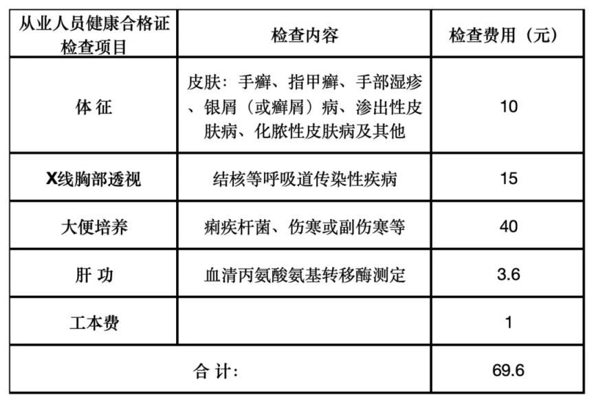 济南市第五人民医院健康管理中心(南郊分中心)健康证体检项目及收费标准